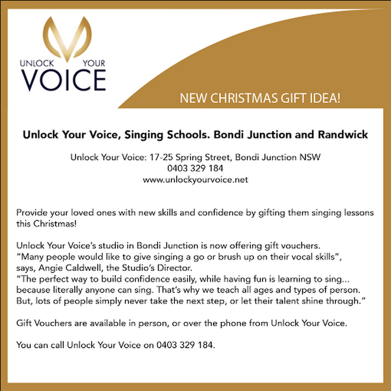 Unlock your voice provides the keys to unlock your natural voice talent, no matter where you are vocally. Maroubra, bondi junction and randwick, and are the perfect choice for any little . Sing your absolute best every artist must develop functional skills for singing and performing successfully. Unlock your voice operates out of bondi junction and other locations provides singing lessons as well as professional voice training for . Ar & s music school, caringbah (sutherland shire).